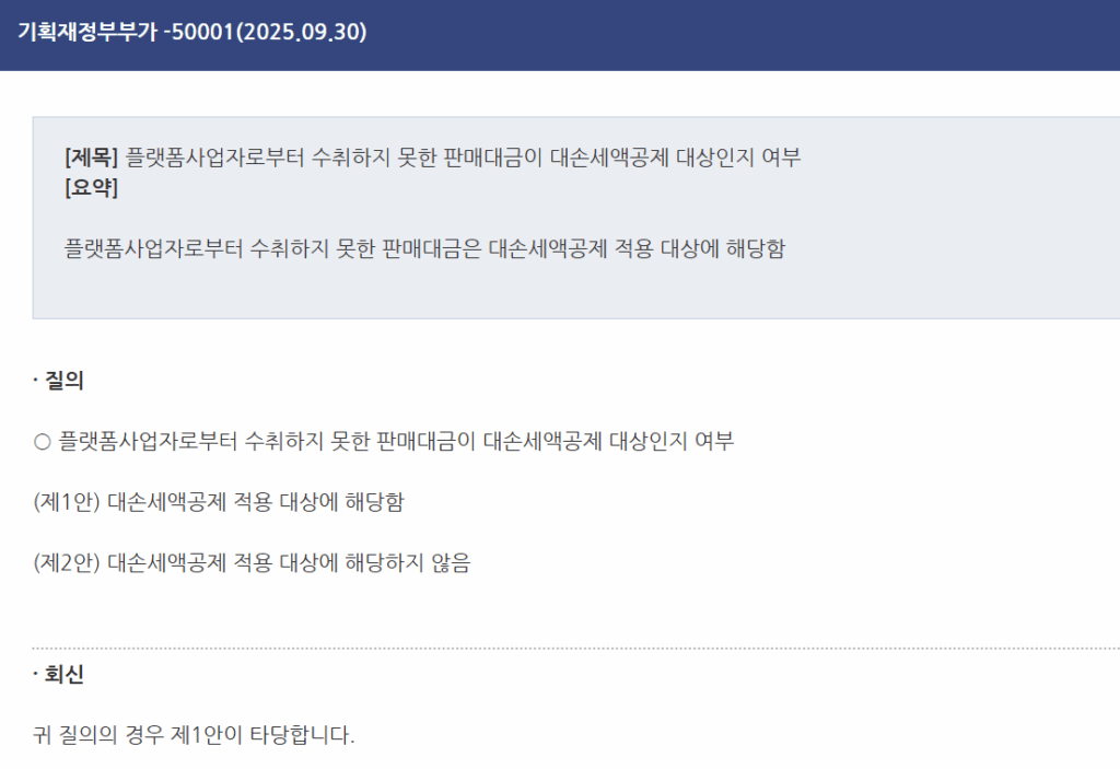 이번 조치는 플랫폼 사업자 정산금 미지급으로 피해를 입은 사업자분들도, 관련 세액 공제를 통해 신속한 세무 환급을 받을 수 있음을 보여주는 중요한 사례입니다.
